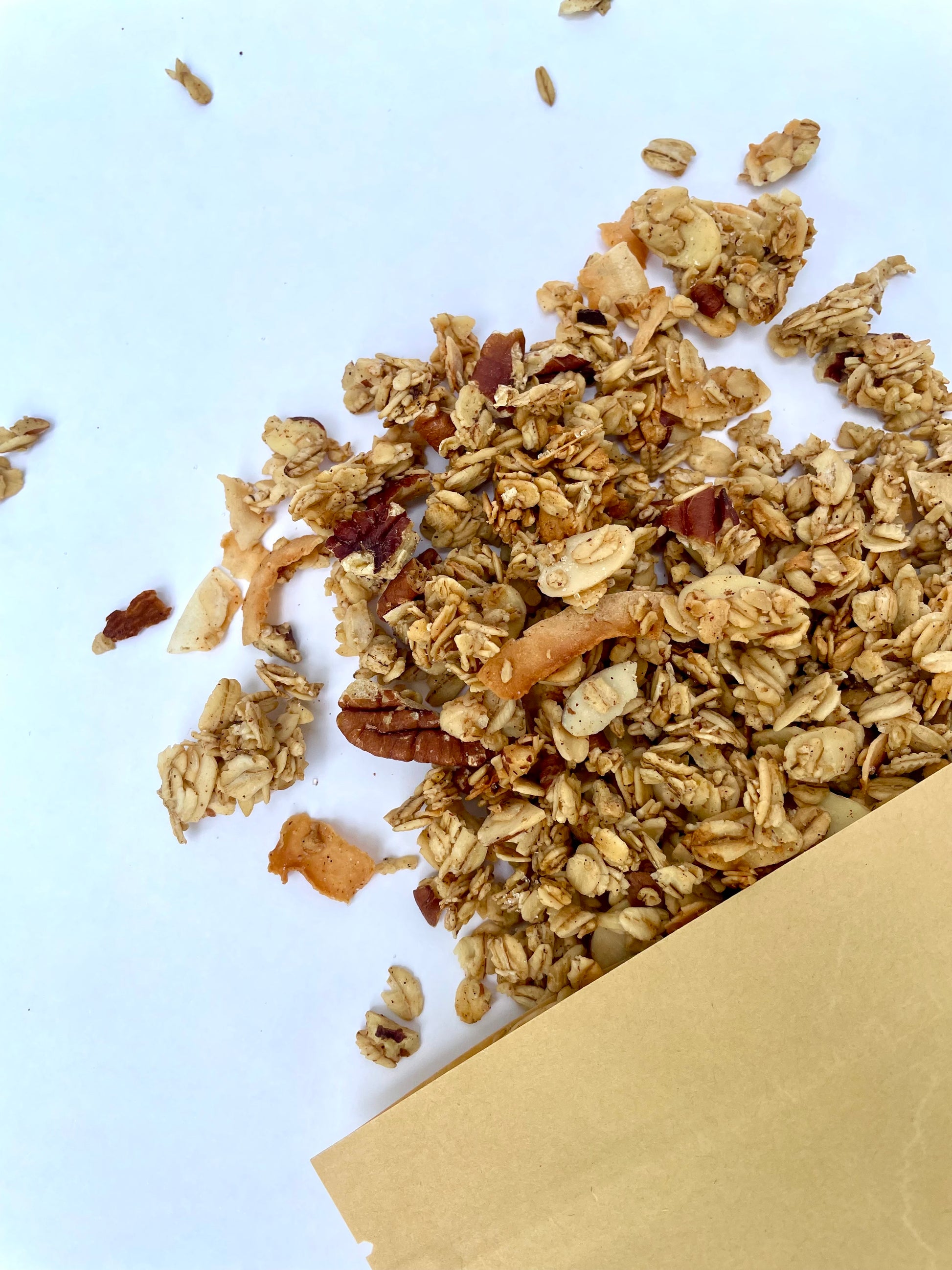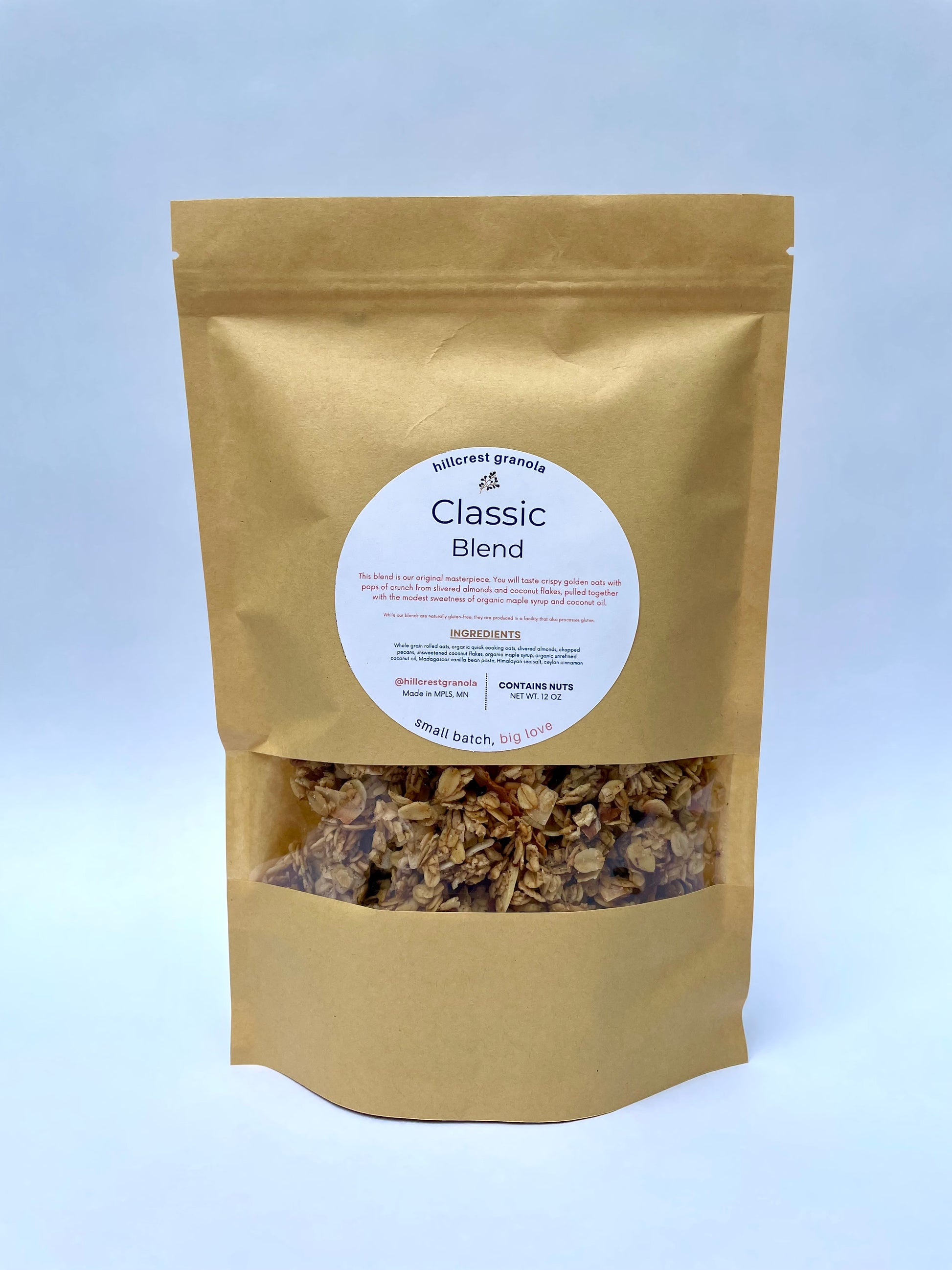 This blend is our original masterpiece. You will taste crispy golden oats with pops of crunch from slivered almonds and coconut flakes, pulled together with the modest sweetness of organic maple syrup and coconut oil.